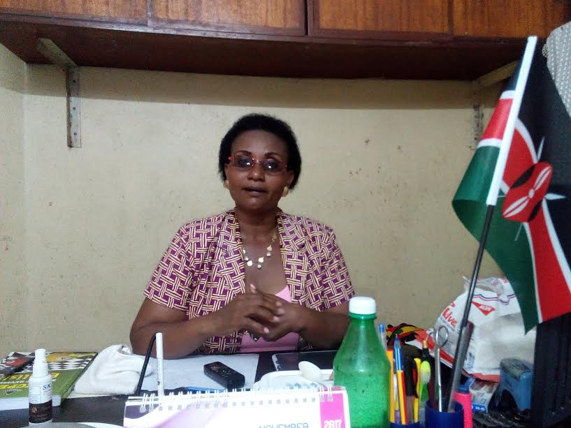 Deputy Head teacher at Ganjoni primary school Lucy Gisore at her office after the results were released. PHOTO: HILLARY MAKOKHA.