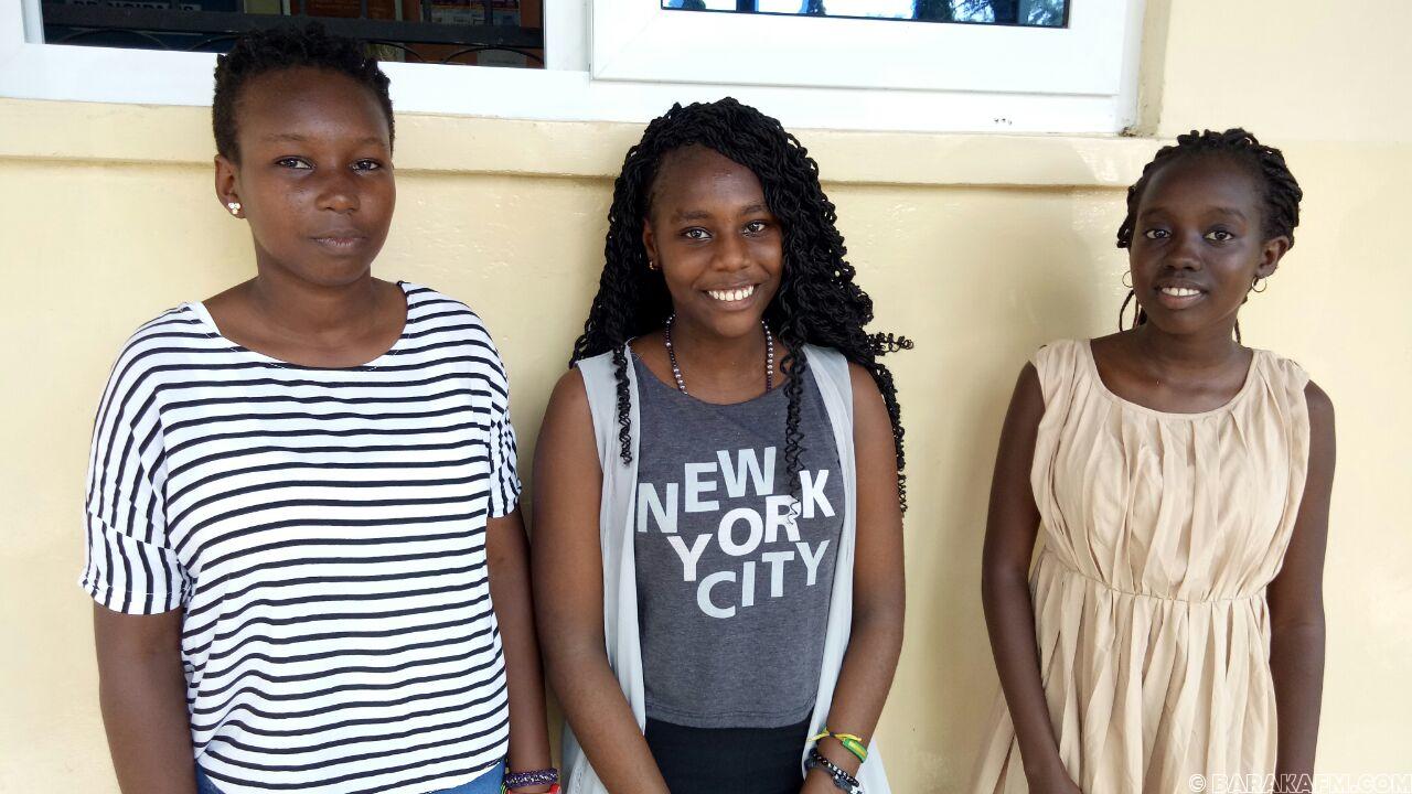 14-year old Hanaan Amer( center) scored 428 marks and wants to be a Doctor. 15-year old Ali Hussein(right) also scored 428 marks.He wants to study medicine. Eugene Otieno (left) scored 426 marks. He aims to be an aeronautical engineer.Three pupils of Nyali primary Grace Kiboros (right) scored 421 marks, Stacy Wango (center) 405 marks and Stacy Munyao (left) 417 marks.