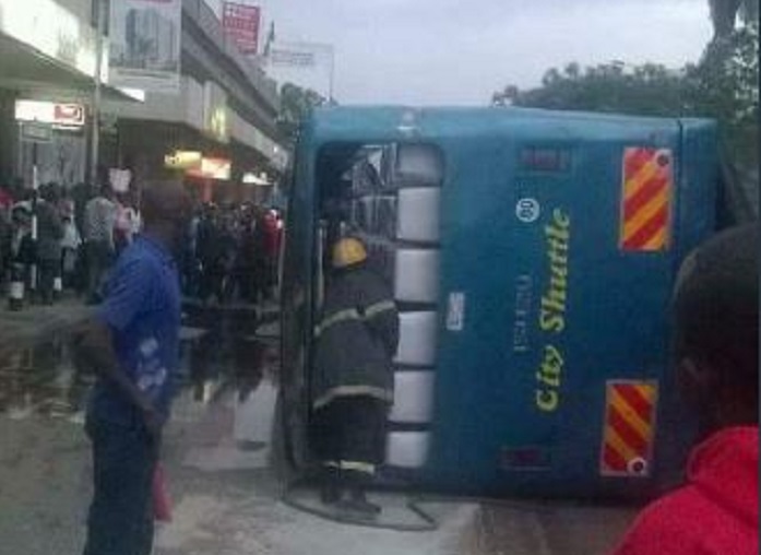 City Shuttle bus overturns in Nairobi CBD injuring several