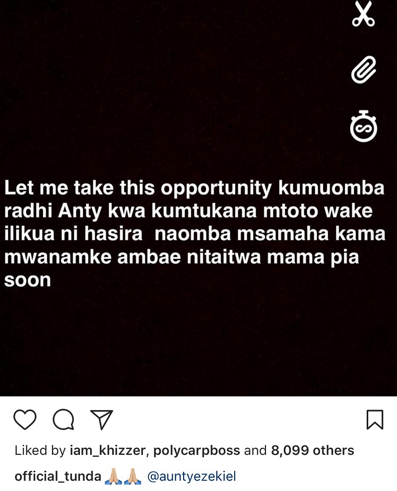 Well, this act also got in the way of the father’s child Moses Iyobo who happens to be one of wasafi great dancers and it seems that she was kicked out of wasafi label an act which seemed to trigger her until she saw the best way is to apologize to Aunt Ezekiel.