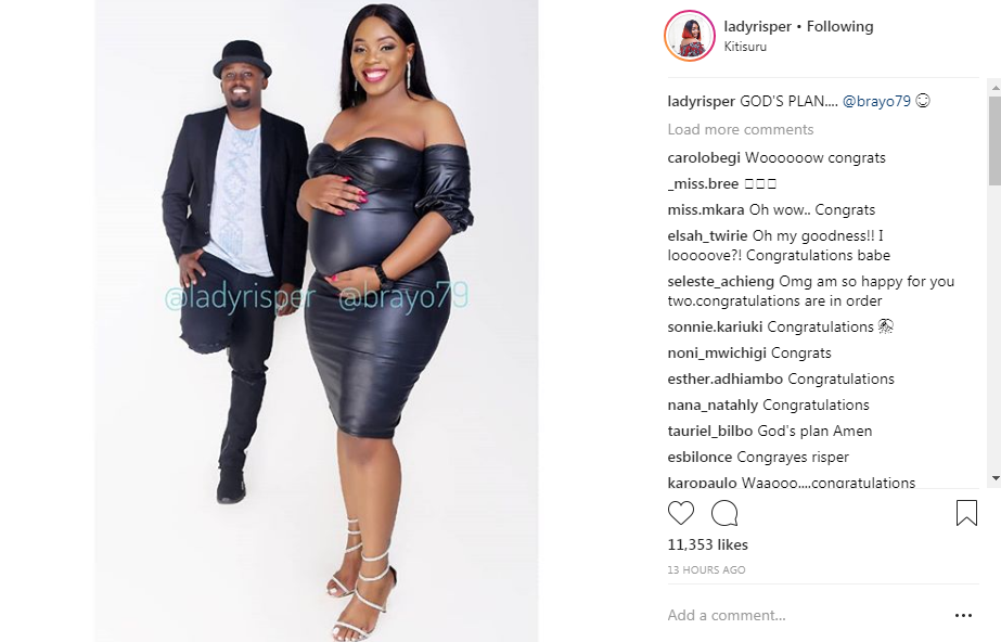 In the photo captioned “God’s Plan” in which she tags Brian as is the norm since their wedding, Risper is seen holding her belly with her husband in the back all smiles.