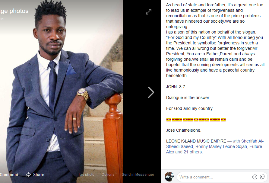 Jose Chameleon pleads with Museveni to pardon Bobi Wine