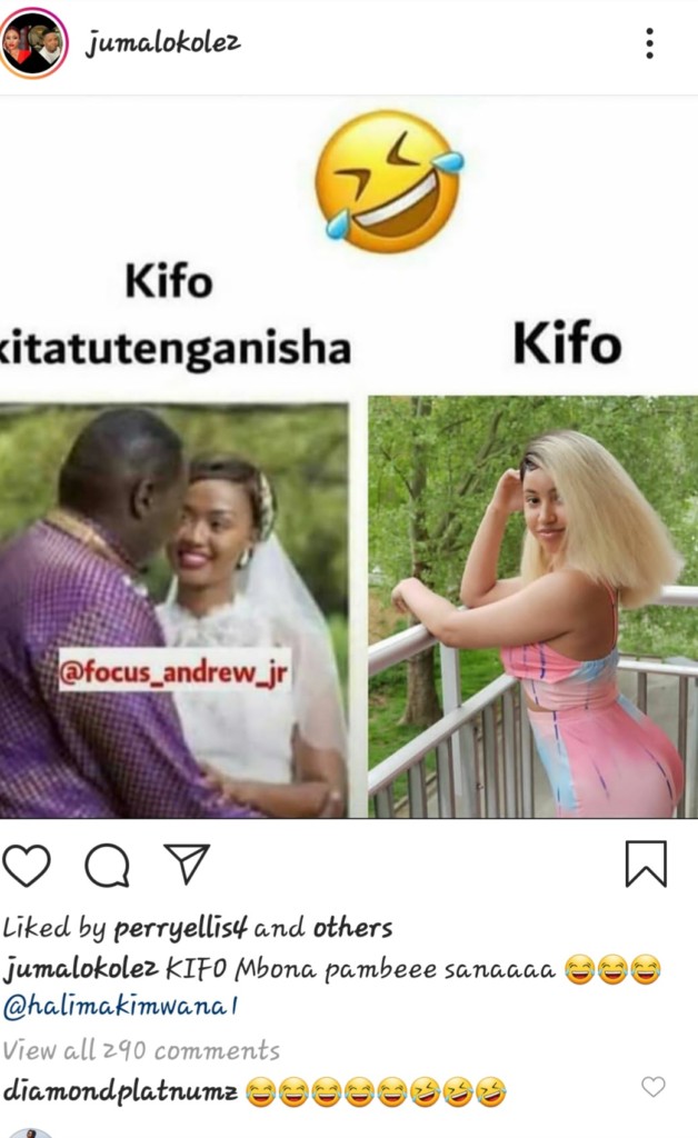 It all began when Diamond’s buddy Juma Lokole shared  a meme of Willis Raburu on the day he exchanged nuptials with his wife  photo grided with the photo of a lady resembling Mivanoella, the lady who has been linked to the marital woes facing the couple and captioned it: