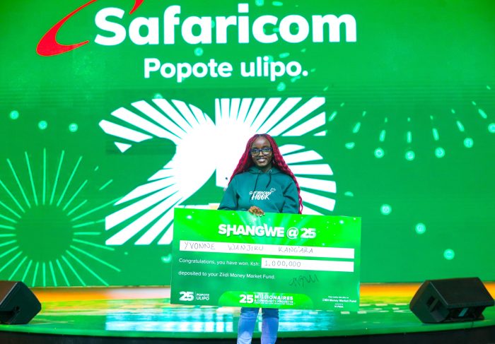 Dreams came true for 20-year-old Yvonne Wanjiku Kang’ara from Ngeu, Kiambu County, who has become the first winner of KES 1 million in the Safaricom’s (NSE: SCOM) ongoing Shangwe @25 consumer promotion.
